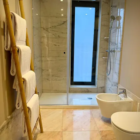 Собственная ванная комната включает в себя биде и душ. Здесь устлан паркетный пол. Апартаменты располагают феном и полотенцами.